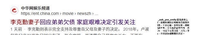 3.中华网娱乐频道:李克勤妻子回应弟弟欠债 家庭艰难决定引发关注